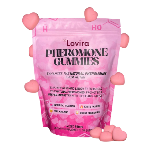 Enhance your confidence and chemistry with Lovira’s Pheromone Gummies. Specially formulated to boost your body’s natural pheromone production, these delicious mixed berry gummies are designed to help you feel amazing, spark deeper connections, and naturally inspire attraction. Whether you’re heading out on a date or just want to feel more empowered in your everyday interactions, Lovira helps you radiate confidence from within.
